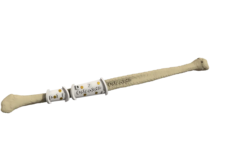 Surgical guides are physical jigs designed to transfer the virtual surgical plan directly to the patient on the operating table. Manufactured from patient medical imaging data, each guide locks uniquely onto the patient's anatomy and directs the surgeon's instruments to the exact pre-planned positions.